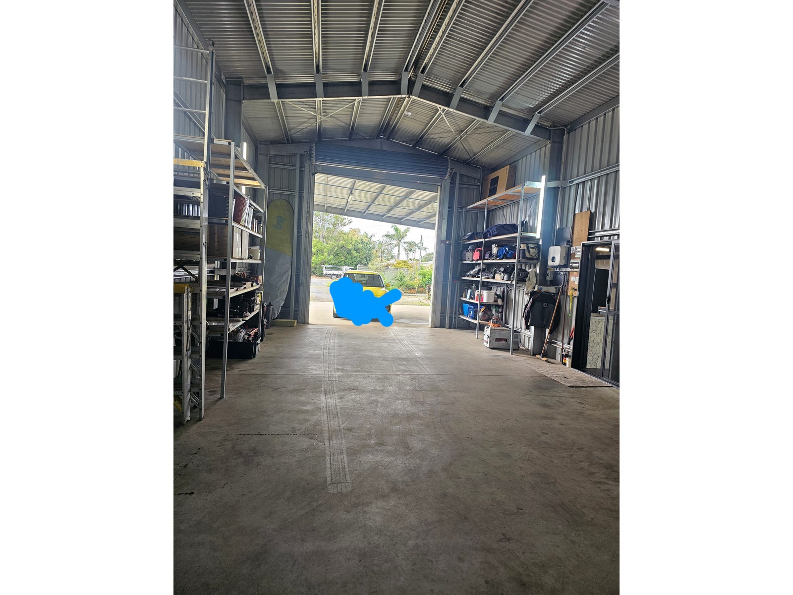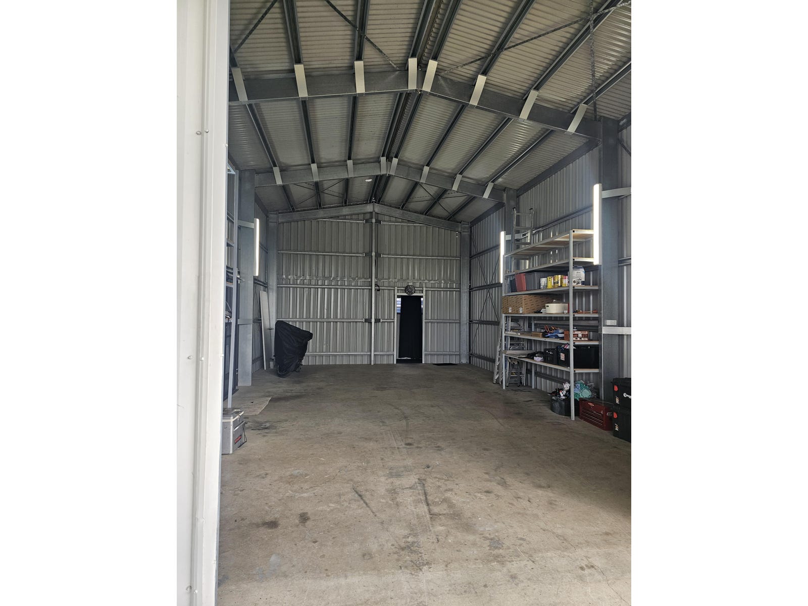 10x 6m x {4m height} shed Custom steel shelving x 2