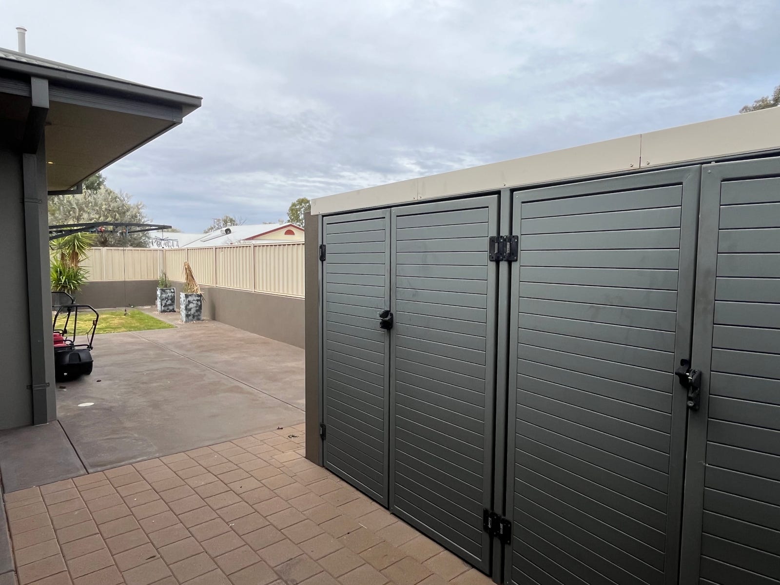Exiting the veranda on the other side leads you to a small, fenced grass yard perfect for pets or kids to play, and around the corner to more storage by means of a large, bricked garden shed perfect for storing all yard essentials and a clothesline.