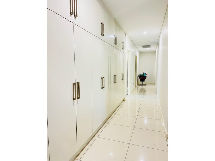 For entertainers, you will find a large modern kitchen with a large standalone stainless chefs' oven featuring Gas hotplates and an electric air fryer oven to satisfy any entertainer's needs. Added luxury includes the walk-in pantry, double sinks, stainless steel electric canopy, dishwasher, and hidden area for toasters/ kettles, etc, not to mention plenty of storage space and benches and the oversized bench top that also comfortably seats four stools for a breakfast bar.