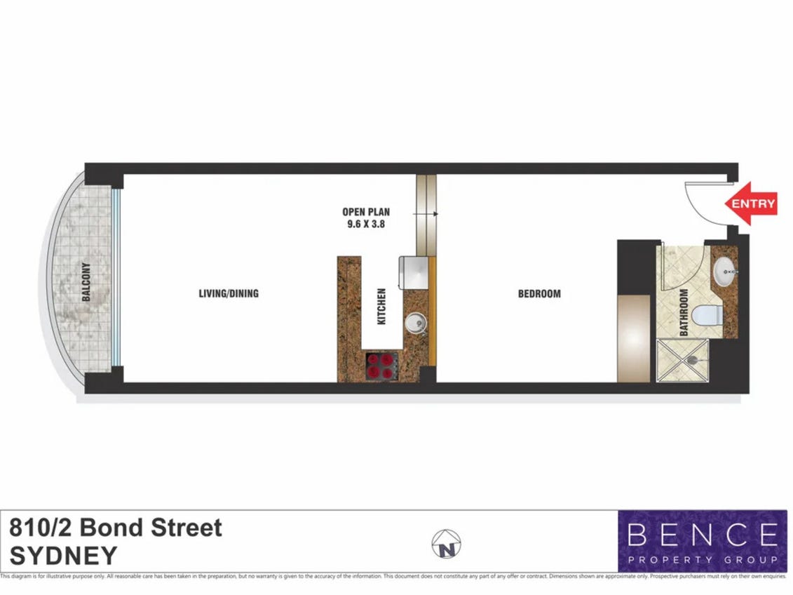 Located in Sydney's prestigious North CBD this luxury studio apartment in the exclusive 2 Bond Street building features premium finishes with marble style finishes in the bathroom, granite and timber finish in the kitchen with European appliances including dishwasher.