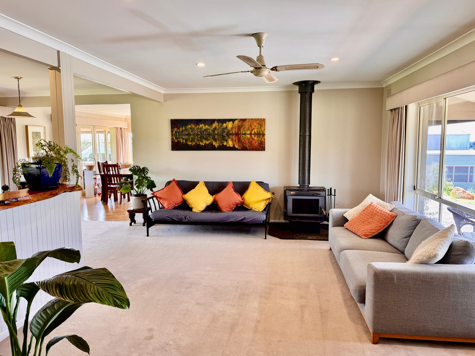 This isn't just a property-it's a legacy. The beautifully maintained 3-bedroom home glows with light-filled, open-plan living spaces, a modern kitchen, sunroom/studio, generous bathroom and a separate laundry and toilet. A wood fire heater warms the entire home, complemented by split-system air conditioning in the main bedroom, living area, and the "Bear / Man Cave"-a versatile retreat with loft storage, ideal as a workspace, gym, rehearsal room, or chill-out zone for adults or kids. Ceiling fans in every bedroom, front and back verandas, and kid-friendly touches like a sandpit, cubby house, and a handcrafted giant backyard swing create a home where memories are made.