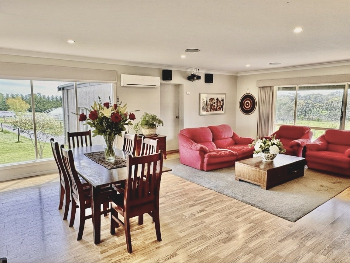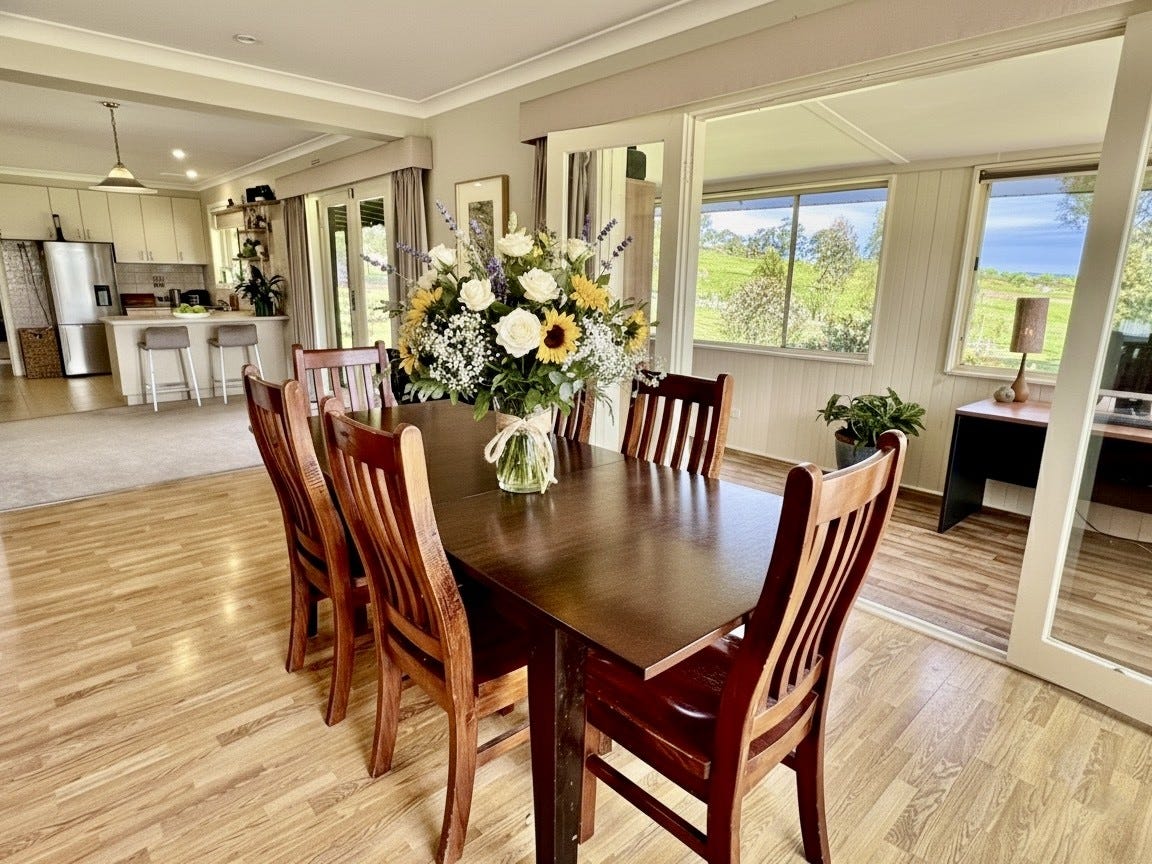 Nature flourishes here. A young garden of natives and introduced species invites your vision. Water is abundant with two dams on the property; one is spring-fed by a seasonal creek, which weaves through a fenced regrowth strip. Every paddock is plumbed with high-quality bore water, supported by a new bore and the home enjoys nearly 200,000 liters of drinking water across seven tanks-water security you can trust.
